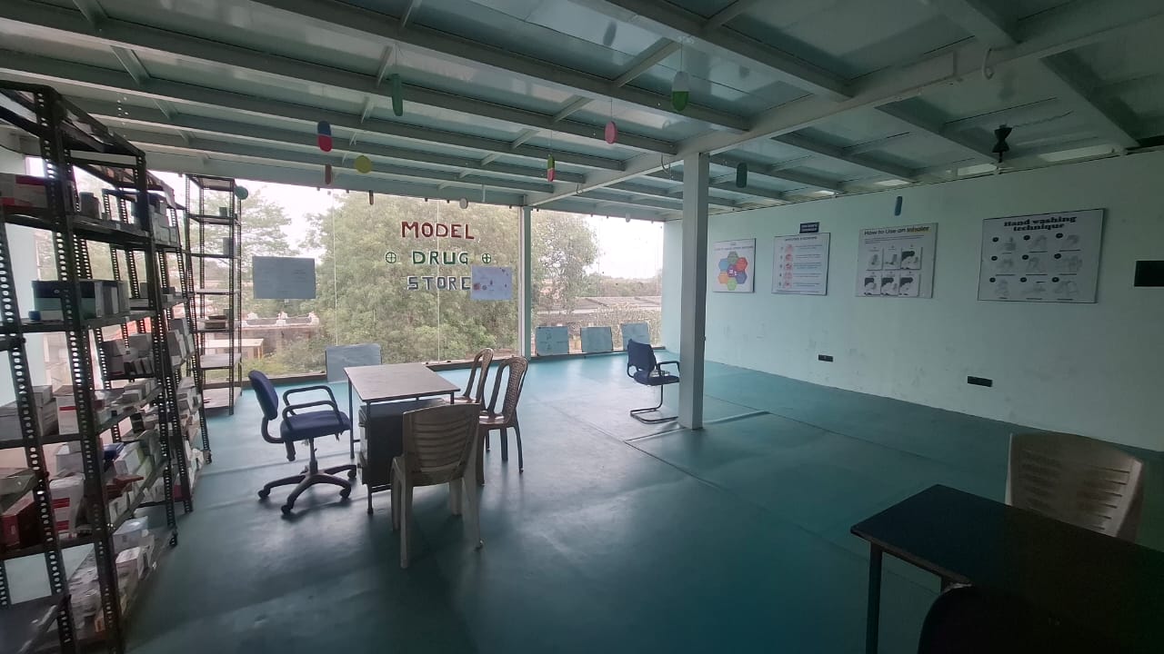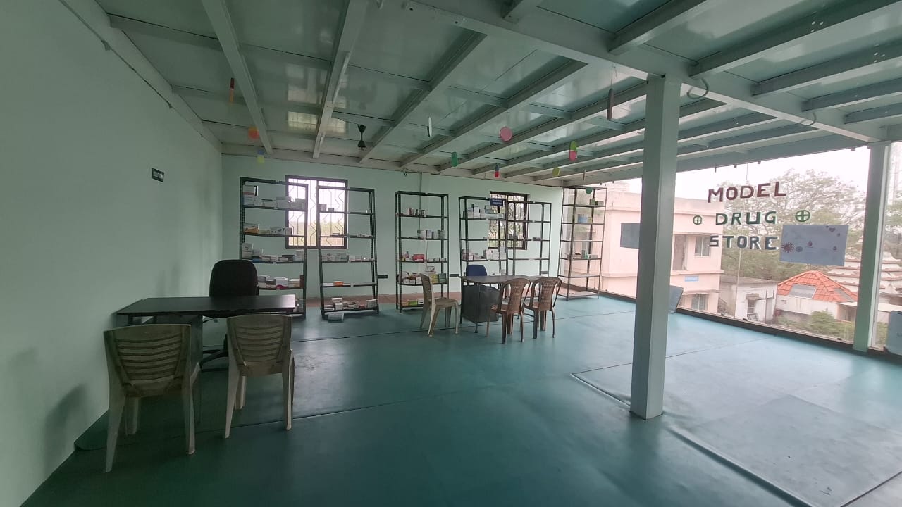 The Model Drug Store (MDS) is an essential facility in the pharmacy college that provides students with practical exposure to real-life pharmacy operations. Our model drug store is designed To provide practical training in pharmacy practice, develop skills in prescription handling and dispensing and to understand proper storage and handling of pharmaceutical products, To familiarize students with legal and ethical aspects of pharmacy profession.